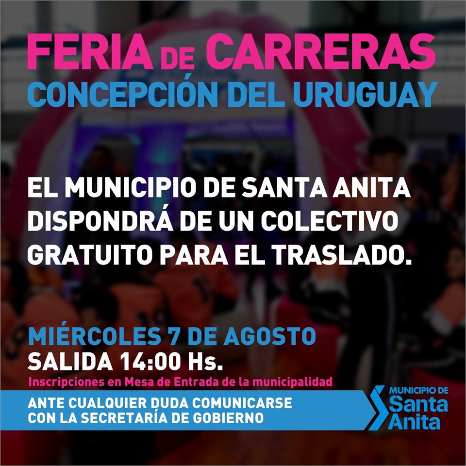 Los invitamos a participar de la Feria de Carreras organizada por el Instituto Becario de la Provincia de Entre Ríos en la ciudad de Concepción del Uruguay. Los interesados podrán apreciar toda la oferta académica que tiene nuestra provincia (universidades públicas, pri... |