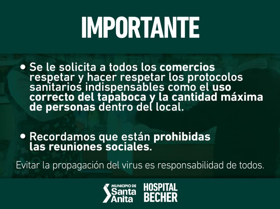 Con el objetivo de *Cuidar la salud de los santanitenses *Sostener la actividad económica en la localidad y *Reducir la circulación de personas, las autoridades municipales y sanitarias han decidido en conjunto tomar algunas medidas de carácter restrictivo por el término de una semana.