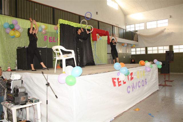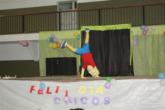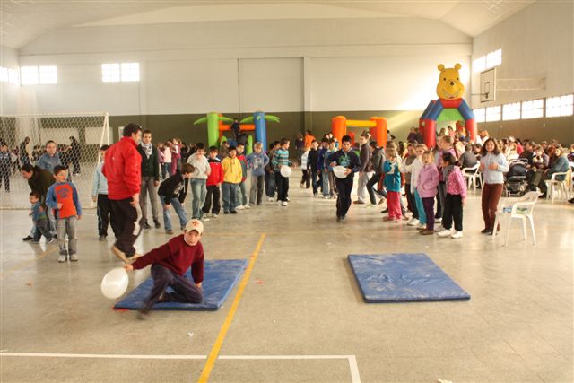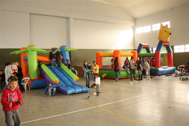 El pasado domingo se festejó el día del niño en el salón Centenario con la participación de mas de 200 chicos, acompañados por sus padres o familiares que pasaron un grato momento junto a los mas pequeños. Con la ayuda de maestras y chicas de la Escuela de Deporte Municipal se organizaron juegos para las distintas edades, se instalaron 3 peloteros, también actuaron los chicos de Gualeguaychu con un espectáculo de payasos, magos, ilusionistas y malabaristas. |