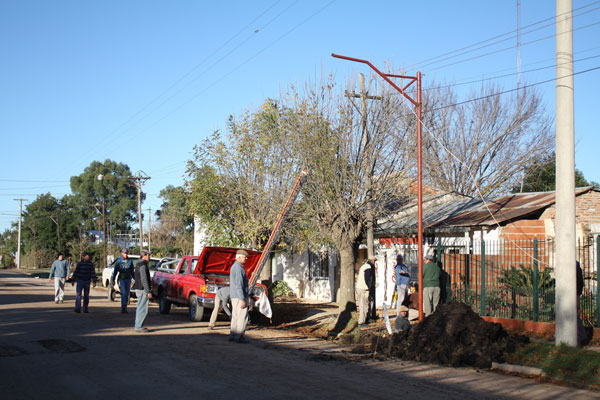 Como estaba previsto ha comenzado la colocación de columnas en la calle 9 de Julio, se colocarán 5 columnas por cuadra haciendo un total de 45 en todo el trayecto, se han fabricado en su gran mayoría en el corralón municipal y también en talleres locales. Se van colocando todo luminarias nuevas de mayor potencia y de bajo consumo.