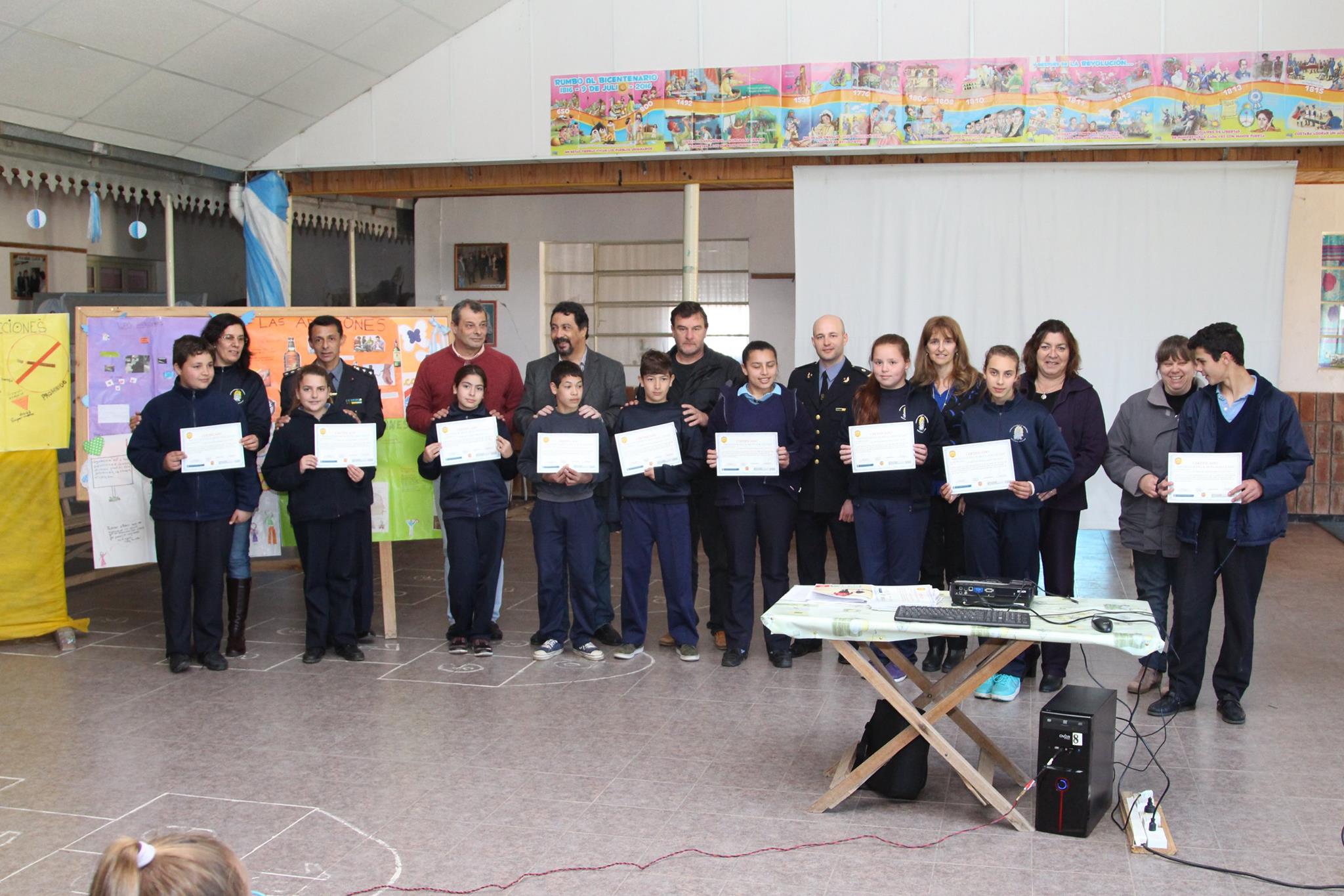 El día martes, en la Escuela San Martín, se realizó el acto de entrega de certificados a los alumnos que participaron de las charlas dictadas en el trascurso del año por el operador socioterapeuta en drogadicción y en psicología social, subcomisario Pedro Baez y la Trabajadora Social, Celeste Rodríguez, sobre el flagelo de las adicciones, enfocado en chicos y jóvenes.