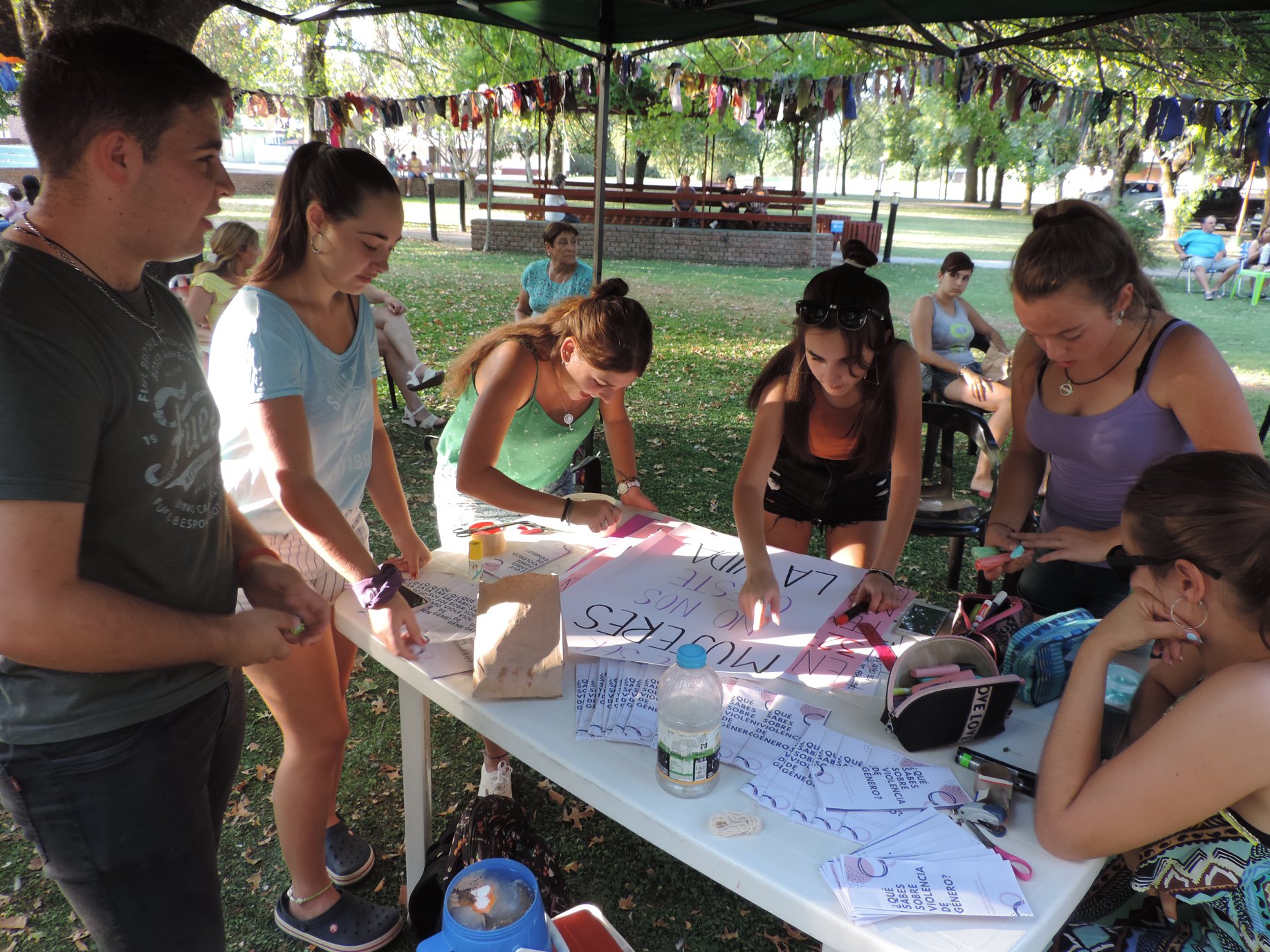 Como estaba previsto, ayer por la tarde se realizó un encuentro de mujeres emprendedoras y artistas locales en la plaza “Del Inmigrante”. Fue una tarde de reflexión, donde se leyeron poemas y cantaron canciones en el marco de la reivindicación por los derechos de las mujeres, fundamentalmente a raíz de la triste confirmación de la muerte de la joven paranaense Fátima Acevedo.