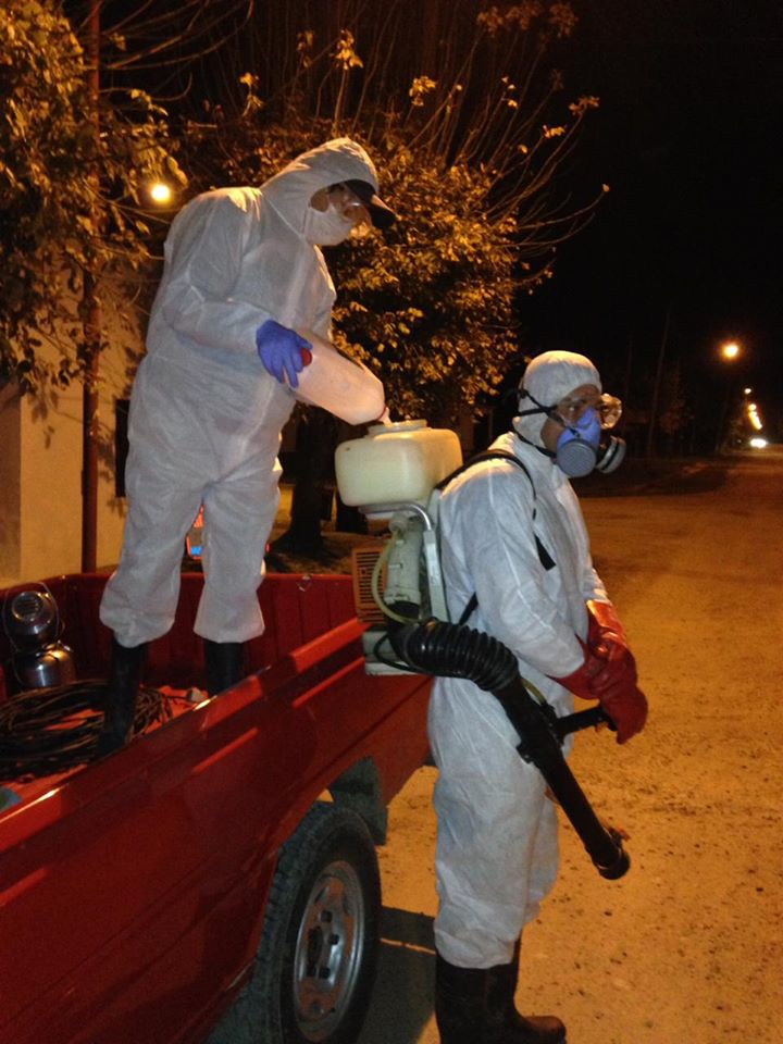 Como estaba previsto, en el día de ayer por la tarde/noche personal municipal, a cargo de la Dirección de Desarrollo Sustentable y Ambiente fumigó con producto adulticida y larvicida en los patios de las viviendas más cercanas al domicilio del afectado.