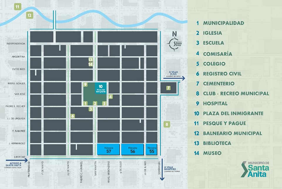 Este trabajo será efectuado por manzanas, dando comienzo de acuerdo a la siguiente numeración: 55, 56, 57 continuando de Sur a Norte, de acuerdo al plano que se acompaña. En la medida que los trabajos vayan avanzando se informará el cronograma de visitas.