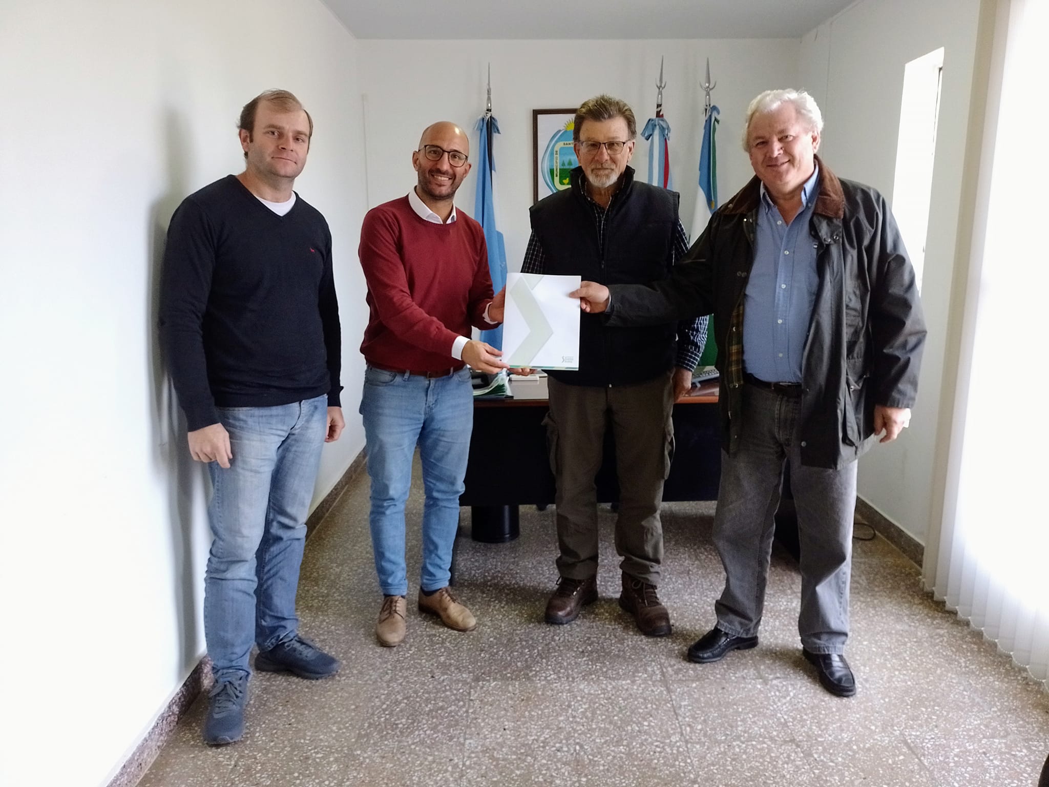 El presidente municipal recibió a Rafael Rothar y Silvio Kippes, presidente y vicepresidente de la Comisión Directiva del Centro Deportivo El Porvenir, para hacer entrega del Decreto que declara de interés municipal al "Country Fest".
