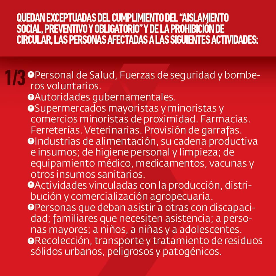Quienes no estén incluidos, sólo podrán salir de sus casas para adquirir alimentos, artículos de limpieza y de farmacia. S... |