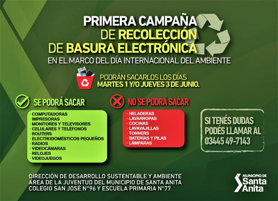 El Municipio de Santa Anita lanza la Primera Campaña de Recolección de Basura Electrónica en el marco del Día Internacional del Ambiente, a celebrarse el próximo 5 de junio. Esta campaña, organizada por la Dirección de Desarrollo Sustentable y Ambiente, cuen... |