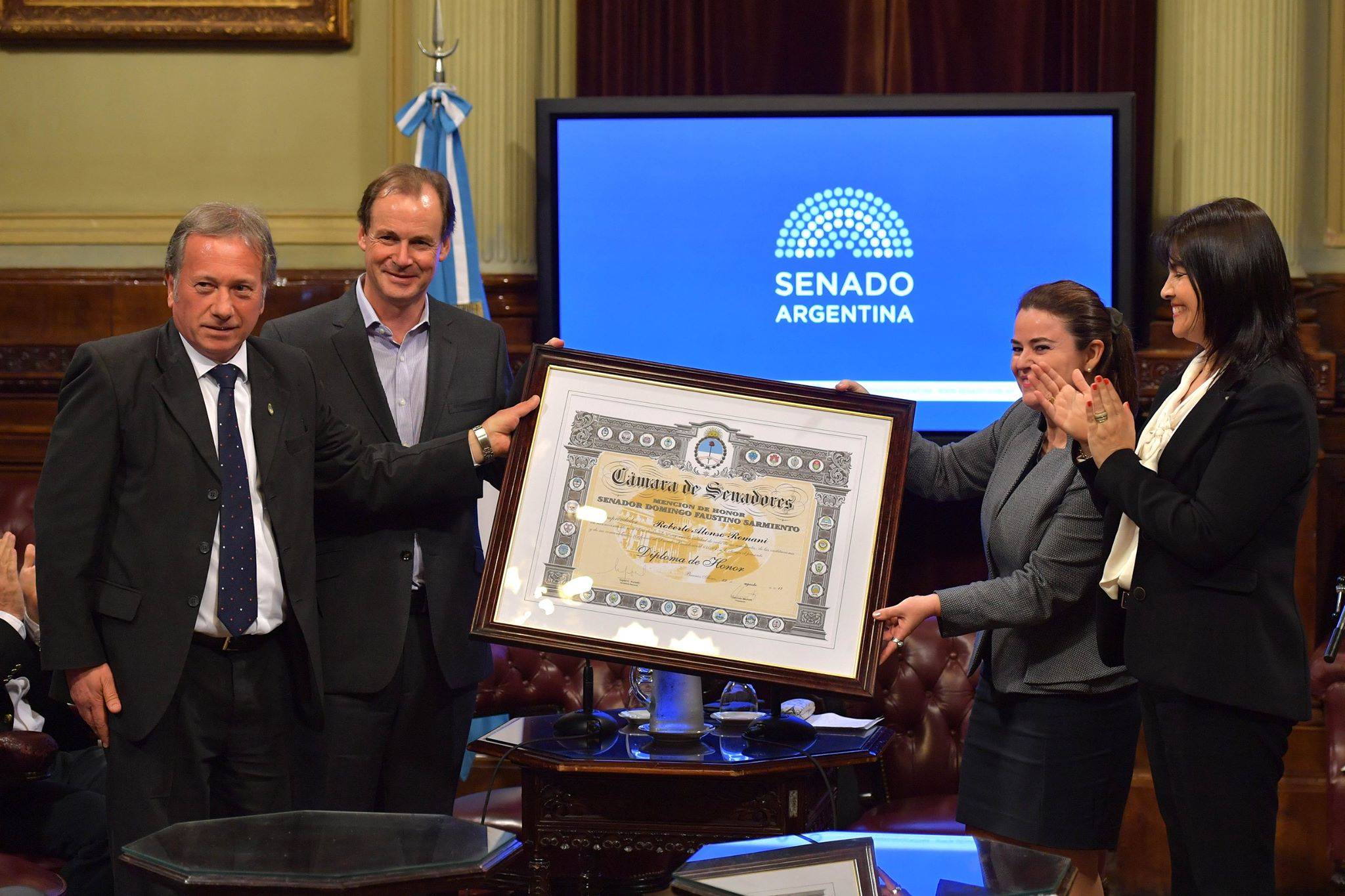 En el Salón Arturo Illia del Senado de la Nación fueron homenajeados Roberto Romani, Hilda Leguizamón, Olga Ronconi, Juan Carlos Mesa y Carlos Spoturno con la Mención de Honor Senador Domingo Faustino Sarmiento. Estuvieron en el acto el Gobernador Gust... |