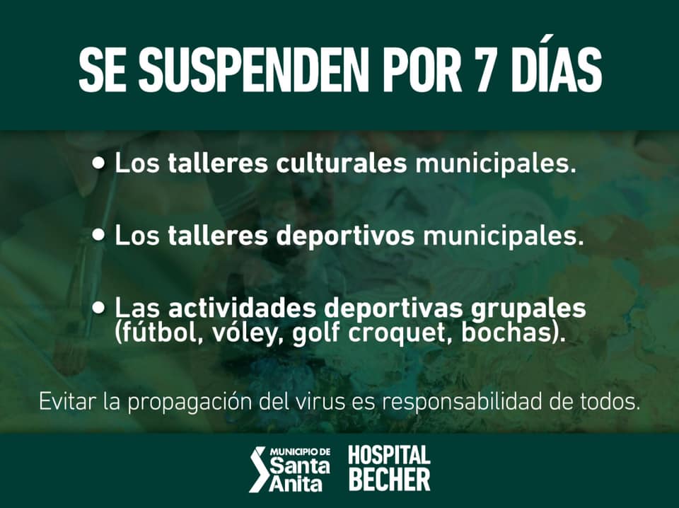 Con el objetivo de *Cuidar la salud de los santanitenses *Sostener la actividad económica en la localidad y *Reducir la circulación de personas, las autoridades municipales y sanitarias han decidido en conjunto tomar algunas medidas de carácter restrictivo por el término de una semana.