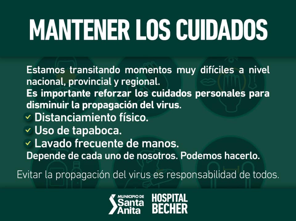 Estamos transitando momentos muy difíciles a nivel nacional, provincial y regional y es muy importante que cada uno refuerce los cuidados personales para disminuir la propagación del virus.