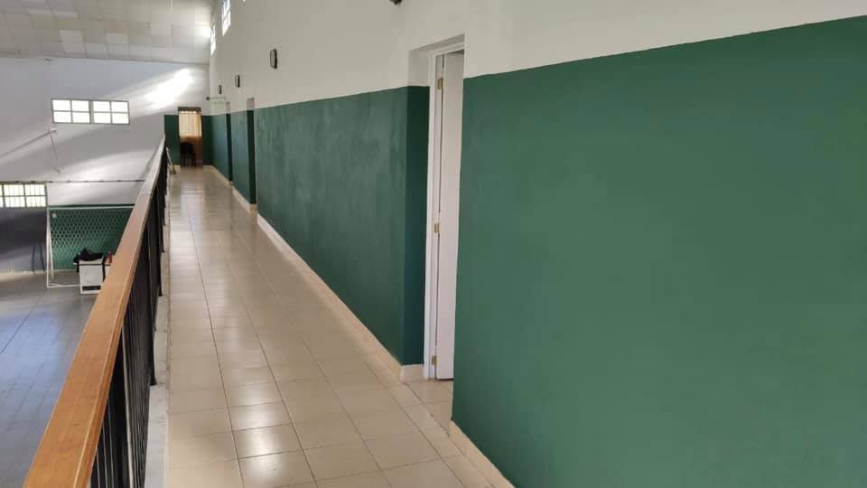 Personal municipal continúa los trabajos de mejoramiento del salón centenario: recambio de paneles del cielorraso, pintura de la parte inferior de las paredes, remodelación de oficinas, demarcación de canchas y nuevos carteles de señalización.