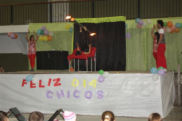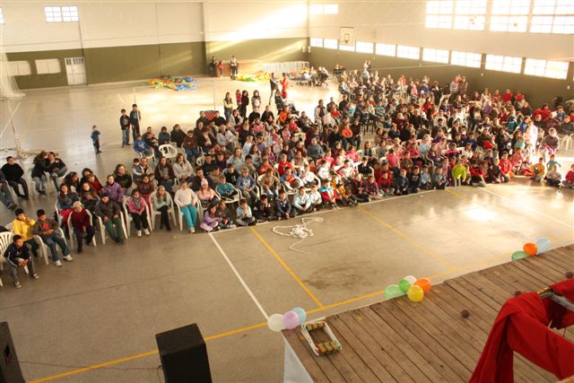 El pasado domingo se festejó el día del niño en el salón Centenario con la participación de mas de 200 chicos, acompañados por sus padres o familiares que pasaron un grato momento junto a los mas pequeños. Con la ayuda de maestras y chicas de la Escuela de Deporte Municipal se organizaron juegos para las distintas edades, se instalaron 3 peloteros, también actuaron los chicos de Gualeguaychu con un espectáculo de payasos, magos, ilusionistas y malabaristas. |