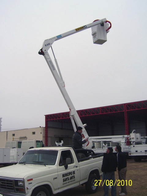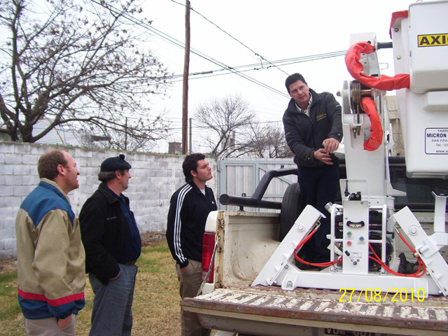 Personal municipal, acompañado por el concejal Sergio Bach, se trasladaron a San Francisco (Córdoba) a los efectos de retirar el hidroelevador montado sobre la camioneta Ford (propiedad del Municipio) y a participar del curso de operador del mismo. Esta herramienta va a permitir hacer un eficiente mantenimiento del alumbrado público y va a ser de gran utilidad en lo proyectado ya que el Municipio está elaborando un plan integral para completar la iluminación en la totalidad del ejido urbano. Se ha llamado a licitación del hierro para fabricar 200 columnas y también se licitará para 200 luminarias que va a ir reemplazando la existente. Son luminarias modernas de bajo consumo lo que va a dar mejor iluminación al mismo costo.