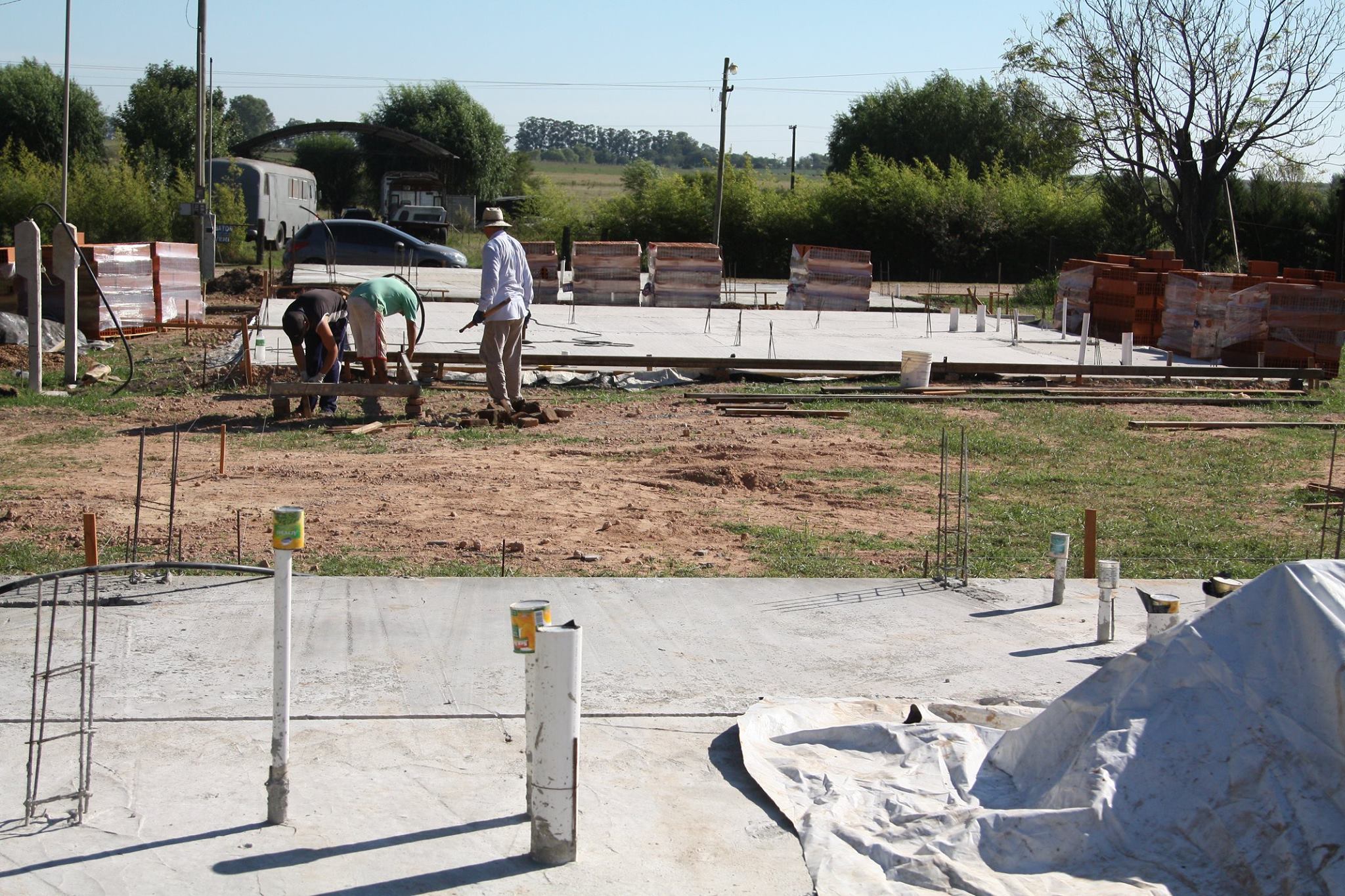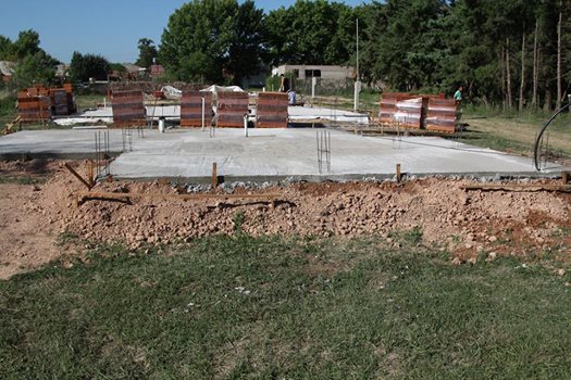Al día de hoy van 21 bases construidas; la idea es poder hormigonar las 8 restantes la semana entrante. Destacamos la participación de las 2 cooperativas de trabajo compuestas por albañiles y ayudantes locales (aproximadamente 50 personas) que colaboran mutuamente en las tares del hormigonado. La supervisión y control del trabajo lo realiza el Municipio. Se están distribuyendo los pack de ladrillos para que en los próximos días se pueda comenzar a levantar las paredes. El plazo máximo de terminación de obra son 8 meses. |