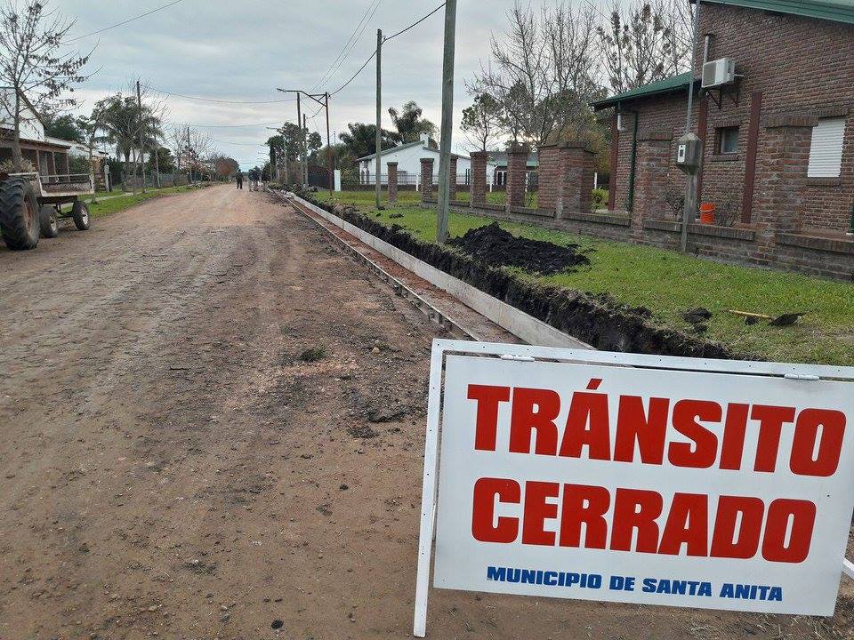 El Municipio de Santa Anita está construyendo 400 mt. lineales de cordón cuneta en calle San José, entre 25 de mayo y 1º de mayo. Esta obra se realiza íntegramente con fondos municipales