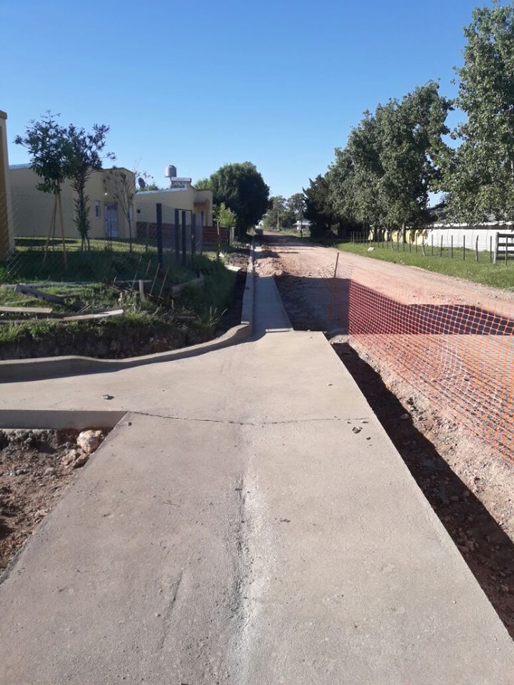 Durante este año se van ejecutando 1200 metros lineales de cordón cuneta y tres badenes. Faltan otros 400 metros para finalizar con 1600 metros lineales de cordón cuneta construidos con fondos y personal municipal.