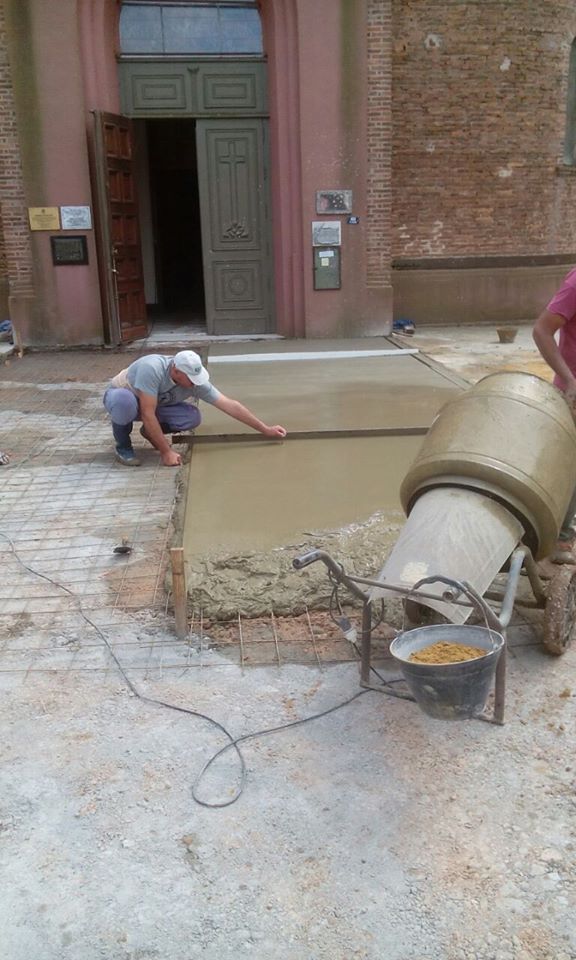 A pedido de la Comisión Pro Templo y el Padre Oscar, el municipio removió el piso de ingreso a la iglesia y está construyendo un contrapiso para que luego la comisión pueda colocar los baldosones nuevos