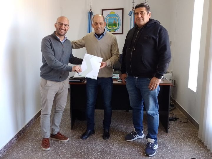El presidente municipal recibió a Rafael Rothar y Silvio Kippes, presidente y vicepresidente de la Comisión Directiva del Centro Deportivo El Porvenir, para hacer entrega del Decreto que declara de interés municipal al "Country Fest".