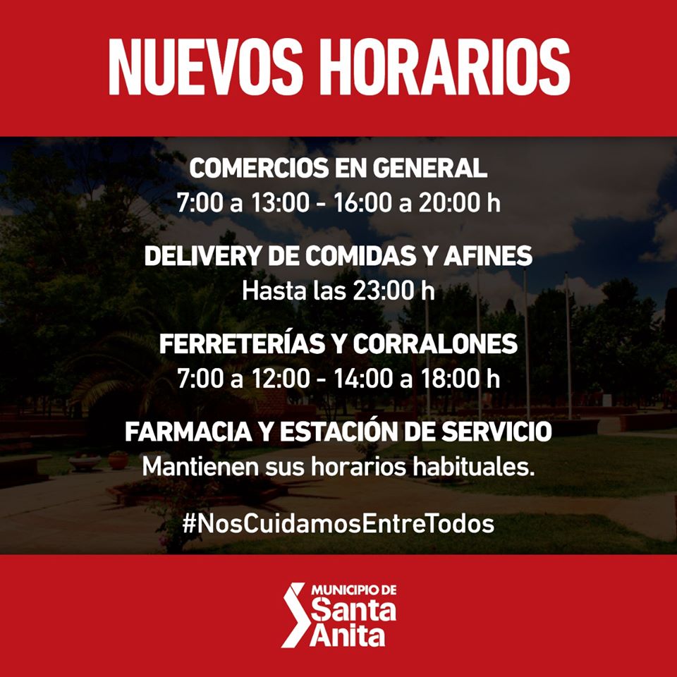 A través del Decreto N° 121/20 el Departamento Ejecutivo Municipal dispuso nuevos horarios para los comercios de Santa Anita.