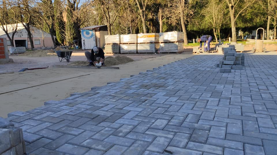 Continúan los trabajos de revalorización del estacionamiento central. Luego de la renovación de las veredas, la nivelación del terreno, la construcción de badenes y cordones de hormigón, ahora comenzamos a colocar los adoquines. |