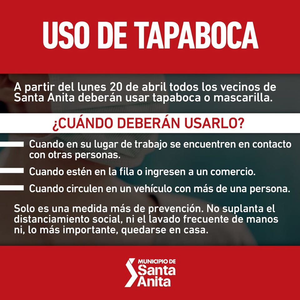 A pesar de que el coronavirus no circula en forma comunitaria en nuestra provincia y no tenemos ningún caso sospechoso en Santa Anita, decidimos incorporar una nueva medida de prevención que, junto al distanciamiento social, el lavado frecuente de manos, el control de ingresos y la ... |