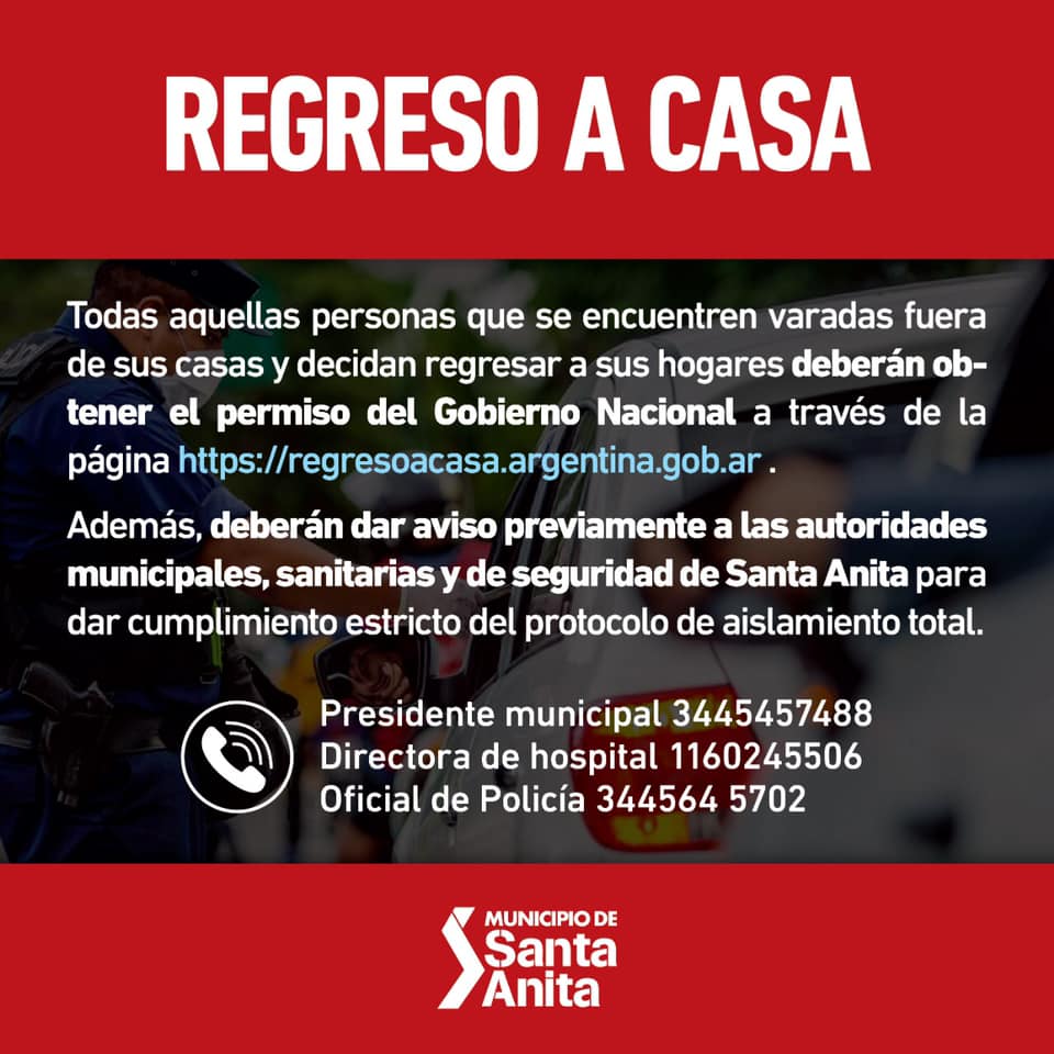 Ante la reciente medida dispuesta por el Gobierno Nacional de otorgarle la posibilidad de regresar a sus casas a todas las personas que se encuentran varadas fuera de su domicilio, el Municipio de Santa Anita, el Hospital Becher y la Policía informamos que seremos inflexibles en el cumplimie... |