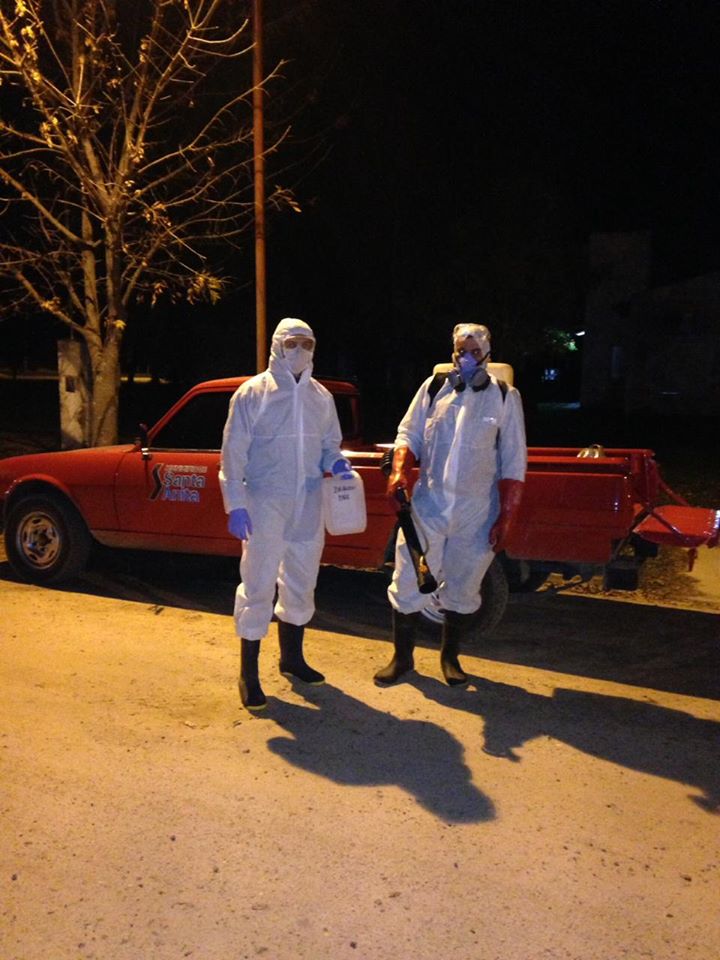 Como estaba previsto, en el día de ayer por la tarde/noche personal municipal, a cargo de la Dirección de Desarrollo Sustentable y Ambiente fumigó con producto adulticida y larvicida en los patios de las viviendas más cercanas al domicilio del afectado.