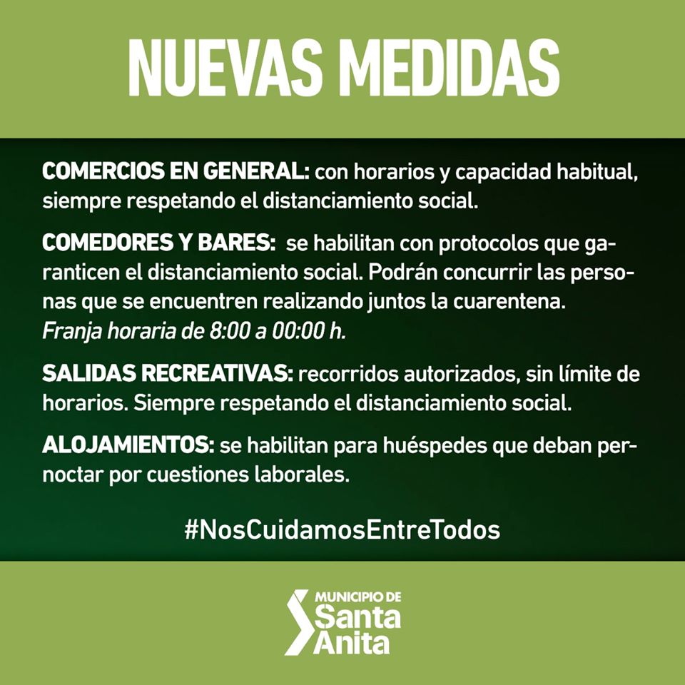 Informamos a todos los vecinos y vecinas de Santa Anita que a partir de este fin de semana se encuentran habilitadas las reuniones familiares en nuestra localidad.